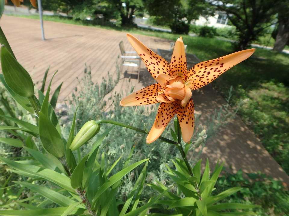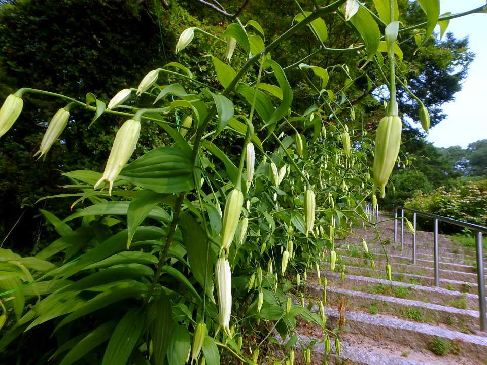 7月6日の岡山は最高気温が35.2℃で6月30日以来7日連続の猛暑日となりました。岡大文学部中庭花壇では八重咲きオニユリが見頃となっていました。いっぽう半田山植物園ではタキユリの開花が進んでいます。サクユリもまもなく開花の見込み。このほか、芝生広場北のハマボウも花を開きかけていました。また裏山ではヤマナシが小さな実をつけていました。子どもの頃に読んだ「やまなしもぎ」が思い出されます。【八重咲きオニユリ(岡大文学部・中庭花壇)】【開花が進むタキユリ。以下、半田山植物園】【サクユリはあと一歩で開花】【アオノリュウゼツランの花茎】【ヤマナシ】(参考:子どもの頃に読んだ『やまなしもぎ』の絵本)【ハマボウ。学名は『ハイビスカス・ハマボウ】