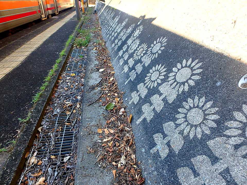 7月29日(火)は半田山植物園が休園日のため、代わりに津山線に乗って牧山駅下車徒歩5分のところにある『牟佐・大久保のヒマワリ畑』を見物に行ってきました。過去日記によれば、2022年7月26日2023年7月25日というように過去に少なくとも2回訪れたことがあります。その時、ヒマワリの殆どが東を向いて咲いていて午後の時間帯では逆光になっていたことから、今回は、法界院駅7時5分発で現地に向かいました。所要時間は13分、潜水橋を渡って合計20分で到着。こんな近いところでヒマワリ畑が見られるというのはありがたいことです。なお、津山線ではもう1本早い6時4分発がありますが、これを利用した場合、山間部にあるヒマワリ畑にはまだ日が当たっていないことが分かりました。なので7時5分発(岡山駅7時1分発)のほうがちょうどヒマワリに朝日が降り注ぐ時間になるためオススメです。【牧山駅1番ホームにもヒマワリいっぱい】【潜水橋を渡る】(旭川上流方面)(旭川下流方面)(左岸からのパノラマ写真。右クリックで拡大できます)【ひまわり畑のパノラマ写真。右クリックで拡大できます】