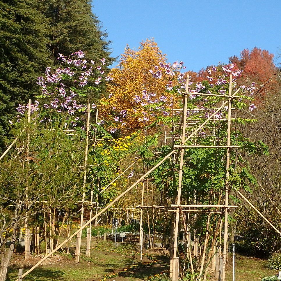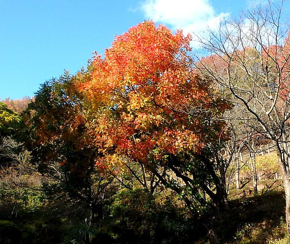 11月6日の岡山は最低気温が7.2℃まで下がりました。10月30日と並んでこの秋でいちばん低い温度です。半田山植物園では連日10℃未満まで気温が下がってきたことで、紅葉が一気に進んできました。【カイノキ】【トウカエデ、カリンなど】【シャクナゲ(時季外れ)とツワブキ】【アキノキリンソウ】【バックヤード(管理区域)のアリストロキア・ギガンティア。温室側からズーム撮影】【モミジの部分紅葉】