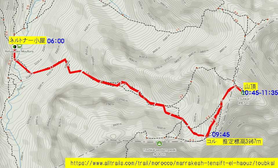 少し間が開いてしまいましたが、11月10日に続き、2022年9月に登頂したツブカル山のアルバムです。標高3967m(地形図からの推定)のコルから約1時間後、頂上に到着しました。ネルトナー小屋からの所要時間は、途中の休憩を入れて4時間45分、標高差は927mとなっていました。出発前から、ツブカル山をもって「人生最後の海外登山」(トレッキングや国内登山はまだ続ける予定)にしようと決めておりましたので、登頂時は達成感というよりも「これで人生に一区切りをつけることができた」というホッとした気持ちが生じました。頂上は東側は断崖となっていましたが、西側のほうは比較的なだらかな斜面になっていました。頂上にはなぜか4~5頭のヒツジがいましたが、このあたりは草も水も無く、かといって痩せ衰えている兆候も無く、どうやって暮らしているのかが大きな謎でした。【マップ再掲】【標高4000mあたりから眺める登山道】(中央から右下方向が登山道。南西方向には4000m級の山々が連なる)(中央から水平方向に見えるのが登山道)【中央やや上、やや右の三角形のモニュメントが頂上】【ついに登頂!】【謎の羊たち】
