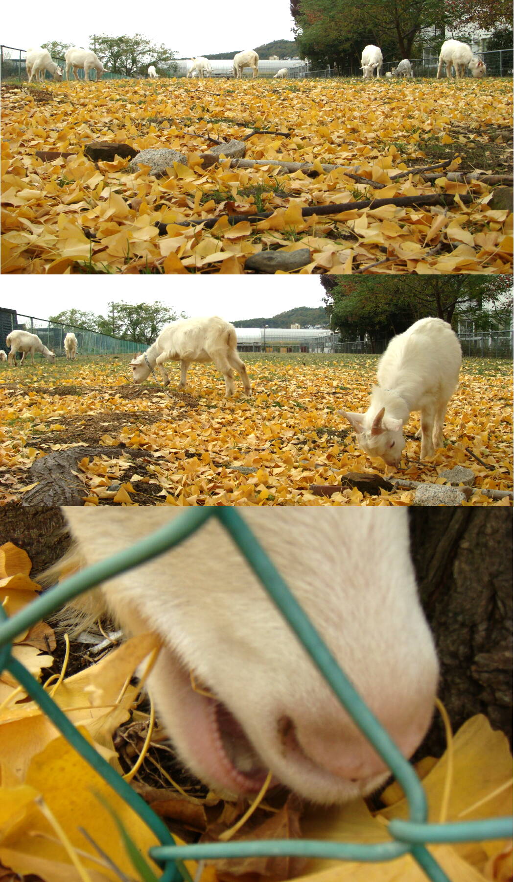 イチョウの落ち葉というのは、腐葉土の材料としては質が悪く、園芸用には適さないようですが、ヤギの餌にはなるみたいです。なお、ギンナンを食べているかどうかは確認できませんでした。
