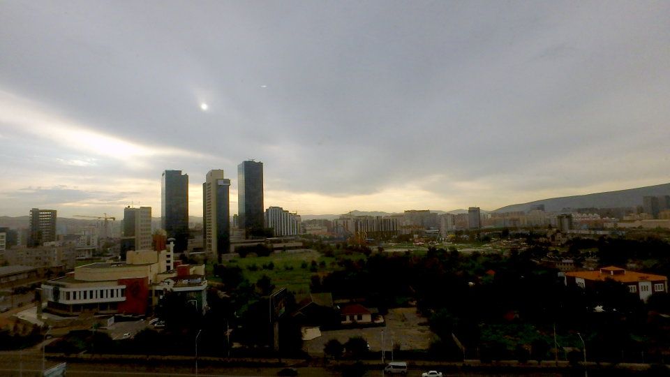 【バヤンゴルホテルの客室から眺める朝のウランバートル】