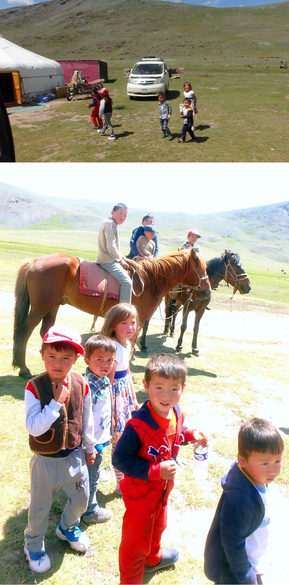 【子どもたちと乗り物。四駆やトラックもあったが、馬にも乗れる】