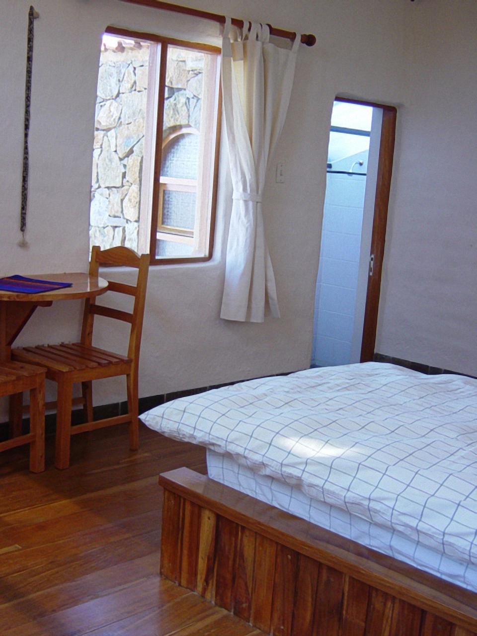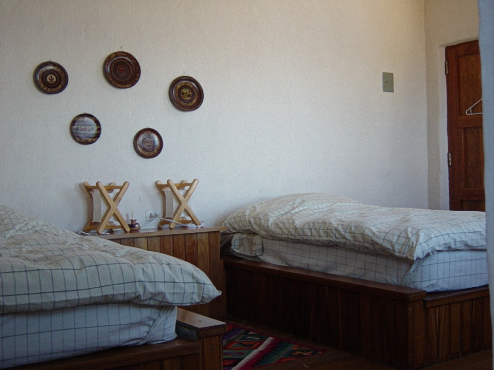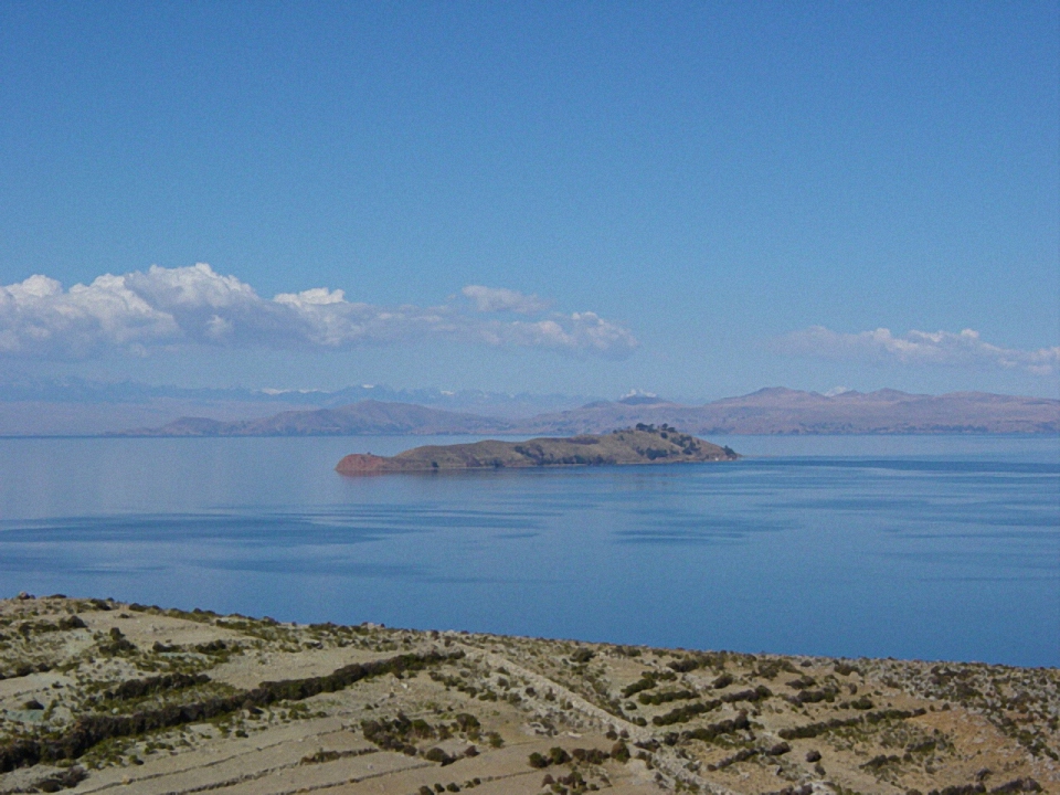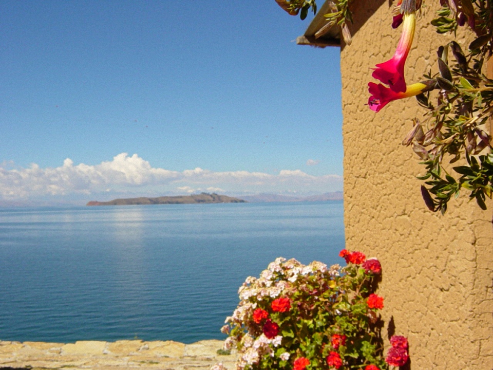 前回に続いて2003年に訪れたボリビア・アンデスのアルバムです。チチカカ湖『太陽の島』では『Ecolodge La Estancia』というホテルに1泊しました。島の東側の斜面にあり、湖越しにアンデス山脈の一部を眺めることのできる抜群のロケーションでした。名前の通り個別のロッジになっており外観は泥の家のように見えましたが、内部は白壁の近代的な雰囲気になっていました。【エコロッジからの眺望マップ】