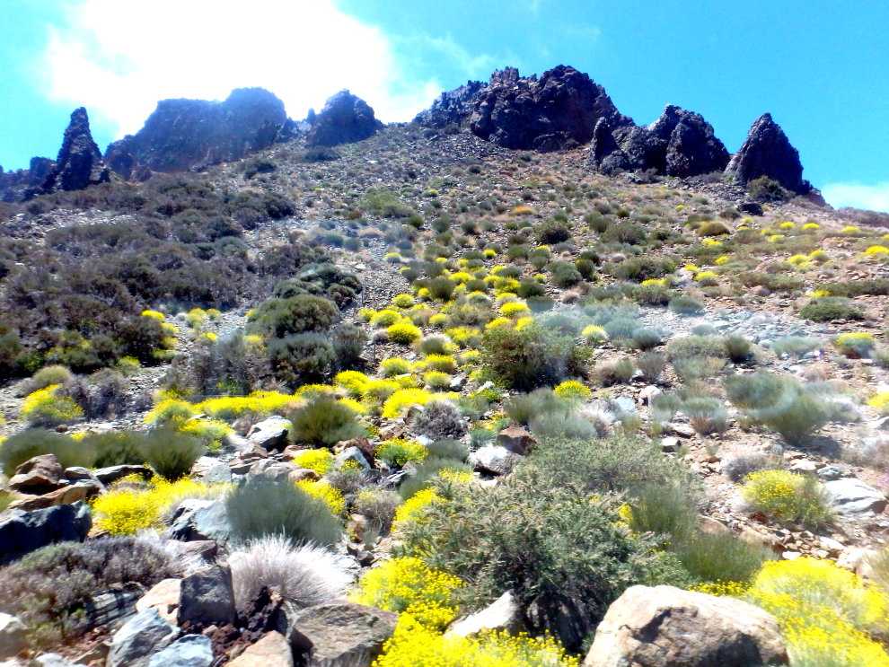 溶岩や砂漠地帯が殆どでしたが、『Descurainia bourgaeana 』( hierba pajoneraまたはflixweed ) という黄色い花の群生も見られました。