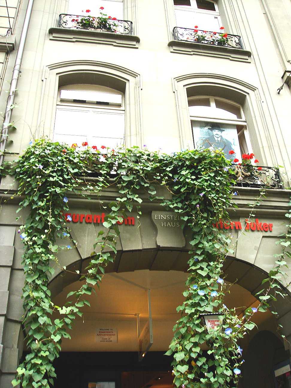 【参考:スイス・ベルンのアインシュタインハウス入り口で見かけたソライロアサガオ。