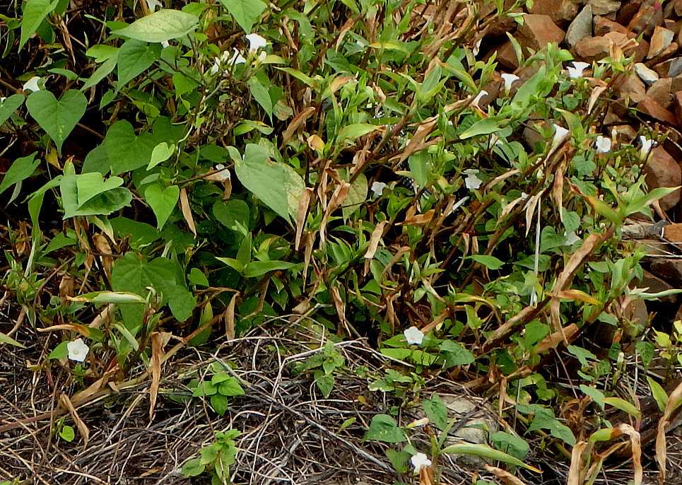 写真は半田山植物園と途中のウォーキングコース沿いで見かけた朝顔と朝顔モドキです。