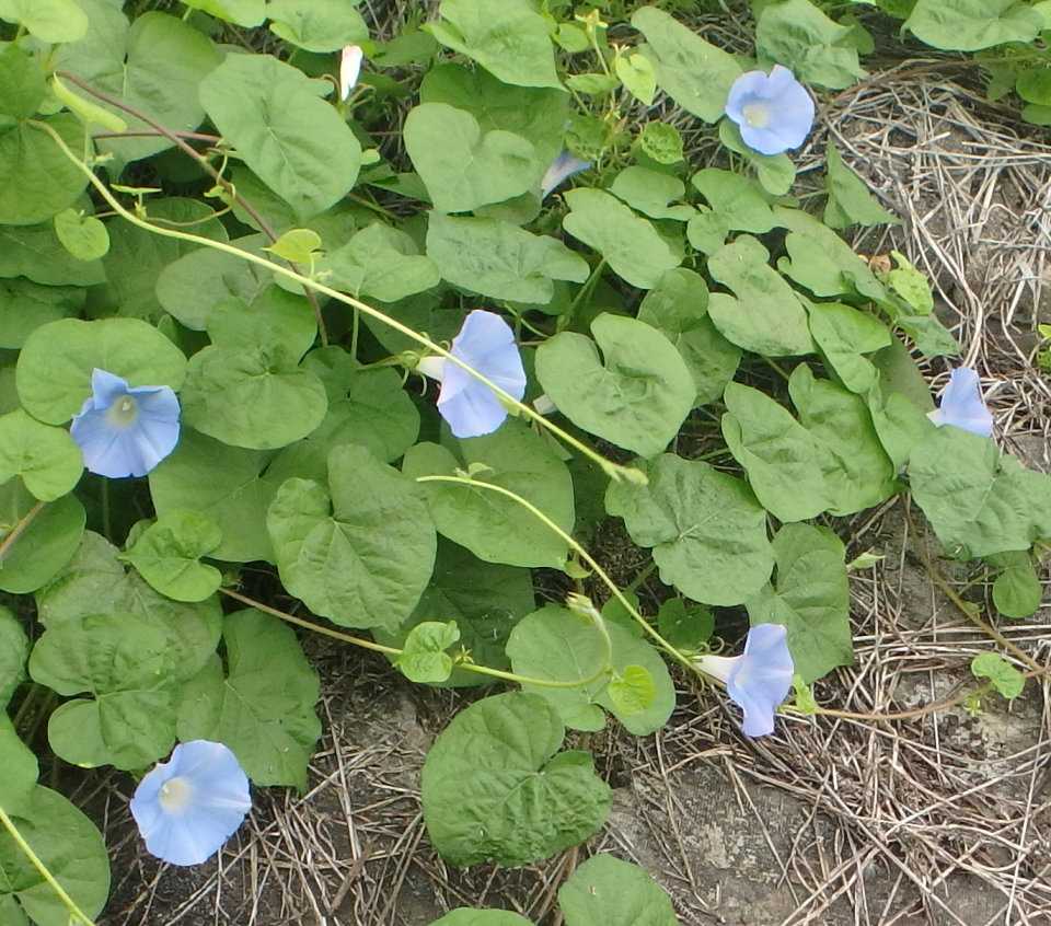 【半田山植物園の『ソライロアサガオ』。葉っぱは「丸葉」】