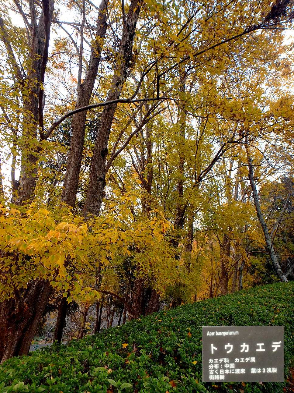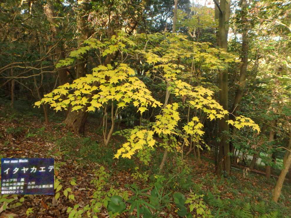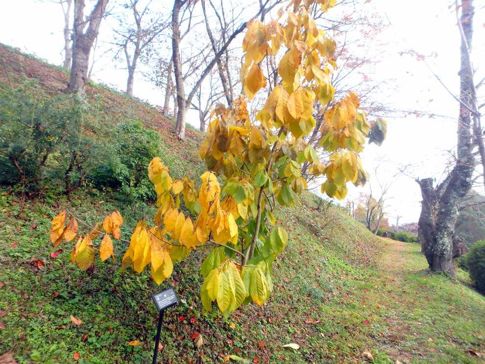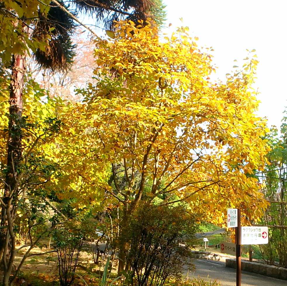 常緑樹に囲まれて目立つ黄葉10種(半田山植物園)