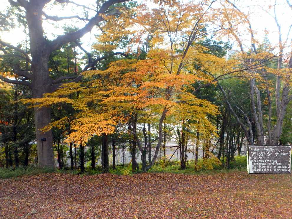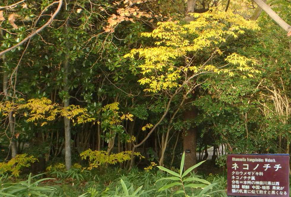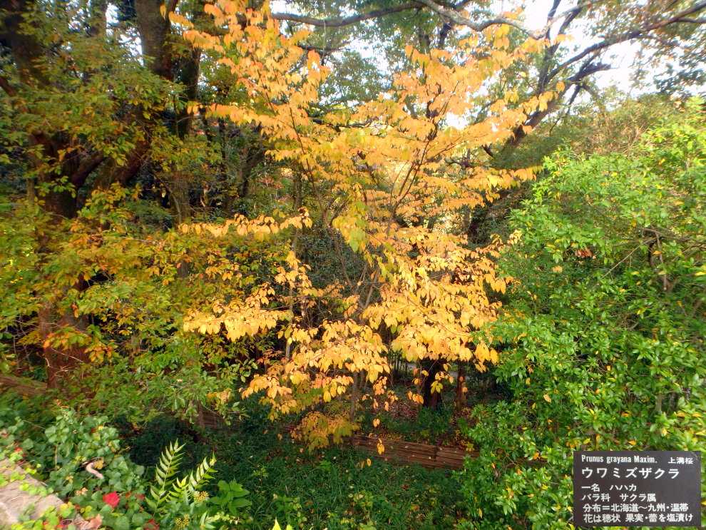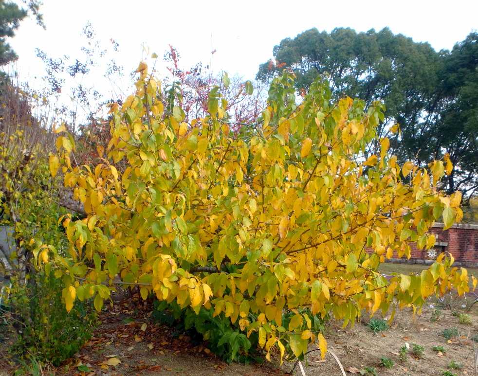 常緑樹に囲まれて目立つ黄葉10種(半田山植物園)