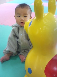 スタバで仲良くなったお友達と、今日は成田市の「こども館」に行ってきました~初めてのこども館。待ち合わせをしてたのですが、少し早く着いてしまった冴空。受付を済ませて、中に入ると・・・冴空、RODYを発見勿論、まだ乗れないのですが・・・この、ボヨンボヨン加減が気に入ったらしく、押したり叩いたりして遊んでましたまだ時間が早かったので、遊んでる子があまりいませんでしたが、なんだかいい雰囲気同じくらいの赤ちゃんと遊ぶ機会があまりない冴空。同じくらいの赤ちゃんにハイハイで近寄って行ってみたりして、とっても楽しそうでした~(子供用システムキッチンのシンクで、コーヒーカップをバシバシ叩きつけたり、人が遊んでるホットケーキのオモチャをとっちゃったりして大暴れでしたが・・・) 永遠のベストセラー玩具ですイタリアの玩具 【ロディ】バランス感覚は大事です♪【春の新生活0... ロックンロディ(レッド) D-5405 ロディぬいぐるみ100cm 「ビッグロディ!!」 送料無料!!(離島も無料デス)