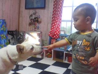 以前の日記で、チャンス姉ちゃんにジャーキーを食べさせてた冴空。ちょっと気を利かせて、袋から食べやすそうなジャーキーを選んであげてた冴空だったのですが・・・今日の冴空は、イジワル「はい!ど~ぞ!!」と、差し出すまでは良かったのですが・・・チャンス姉ちゃんが食べようとしてるのに、離さないチャンス姉ちゃんに、唐揚げをとられた仕返しか??ぜんぜん離そうとしない冴空。困ったチャンス姉ちゃんは、ジャーキーを引っ張り出した~それを見かねたパッカちゃん。「こら~ちゃんとあげな~」と言ってみたものの・・・・・・・・・・TV見てて、ぜんぜん聞いてない