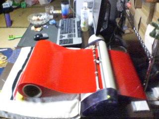本当は、スイフトの洗車をする予定でしたが・・・雨で洗車が出来ないしかも、スターレットは終わっちゃってるし、田んぼの仕事もムリってことで、今日はNOAHに貼るステッカーを作ったパッカちゃん。そこに例のごとく現れた冴空何故か、カッティングマシンが動く音が好きで、動かすとすぐに来るのですが・・・困ったことに、カッティングシートに手を出す冴空シートがずれて、カッティングを失敗する分にはいいのですが、もしものことがあったら困ります。なので、「危ないから、触っちゃダメ~!!」と言ってみたら・・・ヤバイ!ゴニョゴニョ言いながら、こっちに向かってきた~その後、ご立腹の冴空をなだめながら出来たステッカーは、こんな感じ左下に乗っかってるタバコと比較すると分かるかもしれませんが、けっこうデカイコレをNOAHに貼ったら、どんな感じなのかねぇ。貼った写真は、また明日~