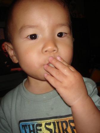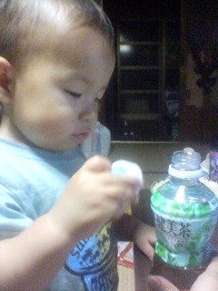 今日も、あんまりお昼寝してくれなかった冴空。起きて早々、ずーーーーーーっと遊びの相手をしていたので、なんだか疲れてしまいましたなので、今日の晩ゴハンは、超手抜き 冷やしうどんだったのですが・・・いつもだったら自分で食べれるくせして、「食べさせて~!」って来る冴空が、自分でうどんを食べてる~だけど、スプーンやフォークを使わず、手掴みで食べる冴空。「自分で食べようと思っただけ、大きな進歩」と思って、観察してたら・・・傍にあったフォークを持ち出した冴空。これは・・・フォークで食べるかも!!更に観察を続けてみると・・・フォークで、うどんのツユを飲もうとしてるだけでしたその後も手掴みを続ける冴空。まぁ、これはこれで面白がって食べてくれるのはいいのですが・・・一度口に入れたうどんを、ピュ~って出して、必殺仕事人になるのは止めてください