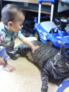 いつも、チャンス姉ちゃんと遊んでる冴空ですが、今日の遊び相手は何故か、ジョニー兄さんいつも一緒で慣れてるせいか、チャンス姉ちゃんには少しイジワルな事をしてしまう冴空ですが、慣れてないジョニー兄さんには大丈夫そうお腹をナデナデしたりして、仲良く遊んでる~と、思ったら・・・お腹のお肉を引っ張られる、ジョニー兄さんそりゃ~、おデブちゃんでブヨブヨしてますが・・・ちょっとやりすぎそして更に・・・足を引っ張られて・・・・枕にされたジョニー兄さんこれには耐えられなくなったようで、何処かへ逃げていってしまいました「ジョニーにも優しくしなきゃダメだよ!」と怒られてしまった冴空。ちょっとションボリしながら部屋に向かった冴空でしたが・・・部屋ではマック@冴空店がOPENさっきのションボリした表情は、何だったんでしょうって言うか、ぜんぜん反省してないじゃん今日も相変わらず、試食ばかりしてる冴空店長。試食するのはいいのですが・・・パッカちゃんと、レタスの取り合いするのは止めてください!!