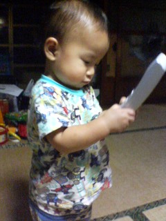 今日は仕事の打ち合わせで、出かけていたパッカちゃん。仕事を円滑に進めるために、パッカちゃんは、外で打ち合わせ ↓↓↓何かあったら連絡 ↓↓↓家にいる私が、出来ることはやってしまう(材料発注、データ製作など)こういう体制で仕事してるので、携帯が手放せない訳ですが・・・最近、携帯がお気に入りな冴空。今日も何かを喋りながら、携帯片手に歩き回って、なかなか離してくれない冴空。「あー!!困った!!」と思ってたら、充電が切れた、家の電話の子機を発見それを持って、冴空と交渉してみたら・・・あっさりOK無事、携帯と交換することができました~携帯と充電が切れた子機を交換した冴空。何処かに電話を掛けてる様子何処に掛けたのか?しばらく観察してたら、冴空語で喋りだした冴空。いろいろ喋ってる冴空でしたが、「あはは~」と笑った次の瞬間・・・大人には見えないお友達と、電話を代わるのは止めてください (||゚Д゚)ヒィィィ(゚Д゚||)