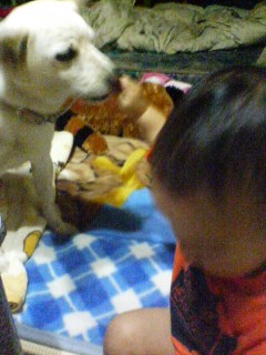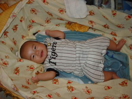 今日も雨で、散歩に行けなかった冴空。家の中でインプレッサに乗ってみたり、絵本を読んでみたり・・・・まぁ、これはこれで楽しんでた冴空。チャンス姉ちゃんを追いかけて遊んでるうちに、オヤツの時間になりました~今日のオヤツは、ラスクだったのですが・・・・寝ながらラスクを頬張る冴空ボリボリボリボリ、スゴイ音をたてて食べてます「喉に詰まっても、知らないよ~」って言ってみたのですが、一向に起き上がる気配ナシ仕方がないので、とりあえす、様子を見てたのですが・・・・・・・・見れば見るほど、どこかのオバチャンみたい