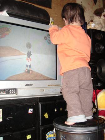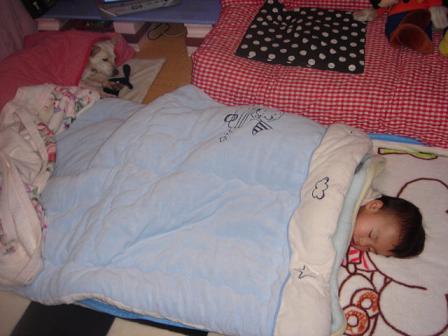 珍しく仲良く並んで寝てる、チャンス姉ちゃんとジョニー兄ちゃんのチャンス姉ちゃんより、のジョニー兄ちゃんの方が大きいのは、この際無視してください大人しく寝てるチャンス姉ちゃんとジョニー兄ちゃんと同じ部屋の中、寝ないで遊んでる怪獣が1匹。寝ないで遊んでる怪獣、冴空さんいつもだったらお昼寝する時間に、「寝んね!」と言いながらゴロゴロして遊んでいた冴空さん。TVでやってたピタゴラスイッチを見たりして。いつもより、ちょっと遅い時間からお昼寝開始。ちょっと遅い時間だけど、夜寝なくなりそうな感じではなく。「ま、いっか!」と思っていたのですが。全くもって、よくありませんでしたみんなが寝静まった後の、はたの家1人で寝ないで、大騒ぎな冴空さん。デジカメを持ち出し、お決まりの撮影会が始まってしまいました~本日の冴空さんの作品は愛車のインプレッサのタイヤ愛用しているミッフィーちゃんのイスその他、何が何だか分からない写真を撮りまくっていた冴空さんですが。デジカメにも飽きてきた冴空さん。目を擦りながら、こちらに向かってきました。目を擦りながら・・・これは、そろそろ寝てくれるかな?しかし、世の中そんなに上手くは出来てません。今度は、スタバごっこを始めてしまった冴空さん。ペストリーケースからケーキを剥がし、何処かに移動中目を擦りながら遊んでいるので、「そろそろ寝ようよ!」と言ってみたのですが。まだまだ、寝たくない冴空さんベアリスタの影に隠れても、バレバレだってば
