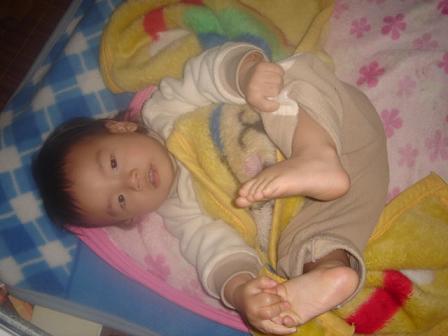 朝っぱらから、某国営放送を見ながら踊ってる冴空さん。今日も、無駄に元気な冴空さん・・・でしたが。お昼ゴハンを買いに行った、冴空さん。帰りの車の中で、何だか様子がおかしいいつもだったら、キャーキャー言ったり踊ってたりする冴空さんが大人しいのです。これは、何かが変だぞ。どう思ったのも束の間、突然吐いてしまった冴空さん。あれれ?さっきまで元気だったのに。ミルクすら吐いたことがない冴空さんが、吐いた・・・いったい、どうしたの~?熱は平熱だけど、この後も数回吐いてしまった冴空さん。これは、もしや・・・今流行のアレですか。ってことで、午後の診察時間開始とともに病院に行った冴空さん診断結果は・・・嘔吐+お腹に来る風邪でしたお腹は、まだ大丈夫なのですが。念のため、吐き気止めとお腹の薬をもらってきました。今日は、ずーっと抱っこで甘えん坊になっている冴空さん。元気になったら、また遊びに行きましょう