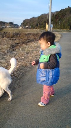 チャンス姉ちゃんと一緒に散歩に行った冴空さん今日も、無駄に元気に騒ぎながらお散歩中チャンス姉ちゃんの後ろを、付いて歩く冴空さん。ダウンジャケットが微妙にデカすぎるのは、気にしないでください2人で仲良く、お散歩中。チャンス姉ちゃんが、何かを発見しました~散歩してる人を発見そりゃあ、冴空とチャンス姉ちゃん専用道路じゃないんだし。散歩してる人ぐらい、いるってば。散歩してる人を、ずーっと見てる2人。ここは、チャンス姉ちゃんの縄張りなのでしょう。だから、チャンス姉ちゃんが見てる分には納得なのですが。冴空さん・・・縄張り意識なんてないのに、ちょっと見すぎですさて。天気予報によりますと・・・明日・明後日、雪マークが付いてる成田市周辺明日は夜から降りだすみたいですが。明後日も雪となると・・・もしかしたら、ちょっとは積もるかも?!※気象庁HPより抜粋まだ、雪遊びをしたことがない冴空さん。これは、チャンス!!ってことで!積もるか積もらないか分からないけど、冴空さんの長靴を買ってきました~今回、冴空さんがチョイスしたのは、カエルの長靴。これがどうも、相当気に入ってしまったらしく・・・ずーっと家の中で履きっぱなしの、冴空さんちょっと・・・これから出掛けるんですけどまだ、雪どころか雨すら降ってないのに長靴で出掛ける冴空さん車の中では脱いだし、外出先では履かなかったのですが。外出から戻ってきた、冴空さん。長靴を履きたいが為に、お風呂に入るのを断固拒否泣いてる冴空さんをどうにかお風呂に入れて出てきたら、再び長靴インプレッサに乗って遊んでる時も、TVを見るときも長靴結局、寝る寸前まで長靴で過ごした冴空さんなのでした
