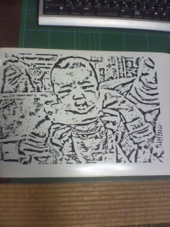 新商品のカッティングアートを開発中の、パッカちゃん今まで冴空さんとチャンス姉ちゃんの写真で試作品を作るも、自分で作って自分で眺めてても客観的な意見は聞けず・・・なんだか煮詰まってきてしまったパッカちゃん。第三者にモデルになってもらって、意見を聞いてみよう。そうだ!シンちゃんのカッティングアートを作ろう!!ってことで、シンちゃん撮影会を開催したパッカちゃん70枚近くの写真を撮り、データ作成していたパッカちゃん。デジカメの画素数を、もっと上げれば良かった・・・などの反省点はあったものの、無事完成本日、モデルを快く引き受けてくれたシンちゃんFAMILYにプレゼントしました~プレゼントしたカッティングアートはなかなか味が出てて、いい感じですデジカメの画素数の事とか、まだまだ改善点はありますが。プレゼントして喜んでもらえたみたいで、ホッと一安心のパッカちゃんなのでした。さて・・・本日の冴空さんは。今日は、お昼寝しなかった冴空さん寝ないでスタバに向かい、ロゴ チョコレート ポーチをGETウキウキで帰っていった冴空さんでしたが。変な時間に眠くなった、冴空さん晩ゴハンを食べて、とっとと寝てしまいました~只今の時刻、22:24まだ、お風呂にも入ってない冴空さんこれから起きてお風呂に入って・・・お目目パッチリになるんだろうな~となると、今夜は寝ないで遊ぶコース確定でしょう・・・・・さて、どうしたもんでしょう