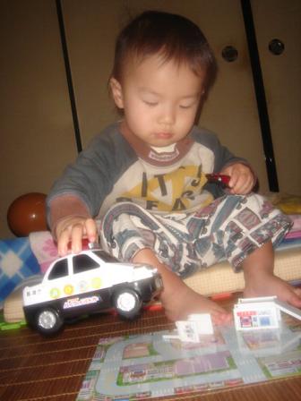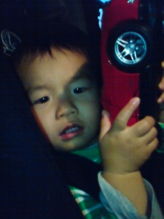 クリスマスの1日前にサンタさんにフェラーリを貰って、早2週間。冴空さんなりに大事にしてはいたのですが・・・ミラーが折れました。運転席側のミラーが、ポッキリわざとじゃないので仕方がないのですが。・・・・壊すの、早すぎ。おまけに、開閉が激しいガルウイングはガクガクだけど、予想していたよりは壊れてないので、良しとしましょう。短時間でガタガタになりゆく、カワイソウなフェラーリ。そんなフェラーリを手に持ち、今日もスイフトでお買い物に行った冴空さんなのですが。最初は普通に、膝の上で走らせていた冴空さん。「ブー!ブー!」と、楽しそうに遊んでます。しかし、運転中の私は、ず~っと冴空さんが遊んでいるのを見てられません。目を離した時、急に大人しくなってしまった冴空さん。何だ~?もしや、寝た?オモチャを持ったまま寝てしまうことが多いので、また寝てしまったのかと冴空さんの方を見てみたら・・・おもむろに、フェラーリを立ててる冴空さんいったい何が始まるのでしょう?運転中なので凝視することはできませんが、たま~にチラチラ見てみると。なんだか、真剣な表情の冴空さん立てたフェラーリに顔を近づけて・・・ビッ!ビロビローン!こっ・・・これは・・・・・何かの呪文?!真剣な表情で、「ビッ!ビロビローン!ロビロビー!」と繰り返す冴空さんこの呪文で、新しいミラーでも生えてくるのでしょうか今日は何だか、不気味な冴空さん結局、新しいミラーは生えてきませんでしたなので、パッカちゃんにアロ○アルファで付けて貰うの決定です