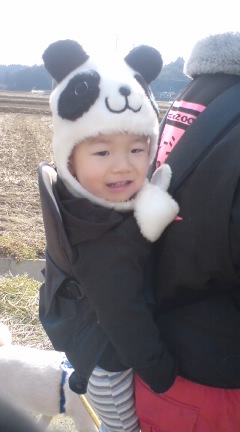 いつも午後から(主に夕方から)散歩に行く冴空さん。今日は珍しく、午前中に行ってみましたいつものように暖かい格好をして、パンダの帽子も被った冴空さん。これで準備万端さて、行きますか・・・って。散歩に行くはずなのに。おんぶされてるのは何故?何故か、おんぶされてる冴空さん。何故におんぶかと申しますと・・・今日はチャンス姉ちゃん+子供達みんなで、お散歩だったのですいつもだったら、パッカちゃんとジジが散歩に連れて行くのですが。ジジは昨日から旅行で、いません。他の家族は職場が遠いので、早朝に出掛けてしまうし。歩くペースが非常に速い、チャンス姉ちゃんの子供達。遊びながら歩く冴空さんは、置いていかれてしまいます。なので、おんぶということになった訳でして。「散歩を2回に分ければ?」と言われれば、それまでですが。きっと、「置いていかれたー!」と騒ぎ出すに違いないなので1度に全員、散歩させてしまう訳ですが。キャン太ココアエルフダイナのリードを持ち、こんな状態のパッカちゃん。今日はワンコが沢山で、冴空さんは楽しそうです久しぶりに皆の散歩に参加の私は、チャンス姉ちゃんミルクのみ。歩く速度がマイペースなので、久しぶりでも大丈夫でしたチャンス姉ちゃんと子供達を、1度で散歩させてしまう訳ですが。ある意味、名物になりつつあるこの光景今日は、いつもより少し遅い時間から散歩でしたが・・・いつもだったら、朝の通勤時間にあたります。交通量も、そこそこ多いのですが。車を徐行しながら、ワンコを見る人・・・わざわざ車を停めて、窓を開けて話しかけてくる人・・・色々な人が、います。別に、見られて困ることをしている訳ではありません。私が通勤中の人だったら、同じく見てしまうでしょう。だけど・・・わき見運転は大変、危のうございます安全運転で、ヨロシクどうぞ