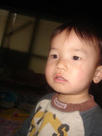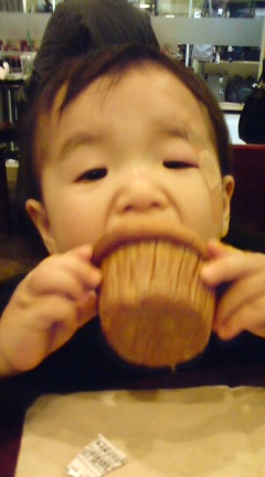 お座敷転落事故から、1日。今日は、縫ったキズの消毒に行った冴空さんまぶたが僅かに腫れてるものの、キズに異常なしとりあえず今後は、自宅で消毒。そして、月曜日に抜糸することになりました気になるキズ跡は、残ったとしても細い線みたいに僅かに残る程度らしい。これで一安心の冴空さんでしたが。今日は消毒だけで、帰れる訳ですが。ここは恐怖の病院・・・一刻も早く出て行きたい冴空さん。「バイバイ!」すれば帰れることを知ってる冴空さんは、先生や看護師さんに向かって必死な表情で「バイバイ!」をしてますあまりにも必死で、手が千切れんばかりの「バイバイ!」をしている冴空さん。当然、先生や看護師さんに笑われながら診察室を後にしましたみんなに笑われながら病院を後にした、冴空さん。帰りにスタバに寄ったのですが。スタバに到着してすぐに、シンちゃんを発見した冴空さん最近、すれ違いばかりで会うのは本当に久しぶりだったのですが。久しぶりに会ったシンちゃんは、以前よりまた更に成長冴空さんと一緒に救急車のオモチャで遊ぶ姿は、微笑ましいものがありましたシンちゃんは「伝い歩き」を始めたそうなのですが。もうすぐ一緒に、歩いたり出来ますね。シンちゃんと冴空さんが並んで歩く姿を見れる日を、楽しみに待ってますさて、キズは痛々しいものの今日も無駄に元気な冴空さん。土子さんから、豆乳バナナマフィンをいただいちゃいました豆乳バナナマフィンに、かぶり付く冴空さん・・・・どうでもいいけど・・・・かぶり付いてる時の顔も必死すぎですよ、冴空さん