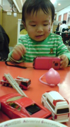 今日も、スタバだった冴空さんほぼ毎日スタバにいるので、他の常連さんとも顔馴染みな冴空さんですが。誰に似たんだか(1人しかいないけど・・・)女性の常連さん(特にキレイなお姉さん)には、ニコニコして愛想を振りまいてる冴空さんまあ、冴空さんも小さいけど男ですから。ニコニコしてしまう気持ちが、分からなくはない。しかし。これが、男性の常連さんになると・・・状況は一変かなり無愛想になる、冴空さんニコニコどころか「抱っこー!」って、こっちに来る冴空さん。どうやら、男性が怖い様子の冴空さん。頻繁に会う男性の常連さんでも、なかなか慣れたりしません。で、頻繁に会う男性の常連さんの中に、特に苦手なオジサンがいる訳ですが。今日も、そのオジサンに会った冴空さん。座っていたテーブルは遠いのですが・・・「抱っこー!」って来た冴空さん。あー、やっぱりね。いつもだったら、そのオジサンがスタバに入ってくると同時に、断末魔の叫びを上げながら走って逃げてくる冴空さん今日はまだ、叫んでないだけマシな方ですなんでこんなに怖がるのか・・・理由は自主規制させていただきますが(別に、イジワルされる訳ではありません!)いつも、そのオジサンにたいやきを買ってもらったりして可愛がってもらってるのに。いつも逃げてる、冴空さん。今日もたいやきを、買ってもらった冴空さんなのですが。オジサンに、こっちに来ない子には、あげない。と言われた冴空さん。さて、どうする?冴空さん。仕事が終わって一緒に遊んでくれていたトモちゃんに、「一緒にいこうか?」と手を差し伸べてもらえた冴空さん。トモちゃんが一緒なら、大丈夫。トモちゃんと一緒に行くのかと思いきや・・・トモちゃんの手を振り払い、1人で貰いに行った冴空さんあれだけオジサンの事を怖がってたのに、大丈夫なのだろうか?やや早歩きで、オジサンが座ってるテーブルに到着した冴空さん。たいやきを貰い、「ありがとう」をして帰って来ました今までの断末魔の叫びは、なんだったのでしょう「怖くないんだよー!」と言っても、怖がってたのに。一瞬にしてオジサンと冴空さんの距離を縮めるなんて。恐るべし、たいやきついつい、たいやきに釣られてしまった冴空さん。ところで。たいやきで簡単に付いて来るのならば・・・釣り竿か何かにたいやきを付けて歩けば、キライな病院でも付いて来るのだろうか?キライな病院に付いて来なかったとしても・・・知らない人に付いて行かないようにね、冴空さん
