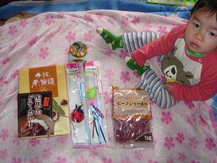 昨日の朝のお話なのですが・・・いつもの時間、いつものように目覚めた冴空さん。まだ眠いようで・・・「抱っこ攻撃」開始なのですが。冴空さんが「抱っこしてくれー!」と騒いでいると・・・・庭に、ニャニャ(クロネコヤマト)のトラックが入ってきました~今朝は集荷を頼んでないし・・・何か荷物が来たのかな?庭に出て、荷物の伝票を見てみたら。差出人は、きよちぃーさん荷物が届くと、「開けろー!」と大騒ぎする冴空さん届いた荷物が仮に仕事の道具でも、自分の物が届いたかの如く大騒ぎなのですが。今日も例外に無く、大騒ぎな冴空さん。はいはい、分かりましたよ。開ければいいんでしょ、開ければってことで、荷物を開けた私なのでしたが・・・・パッと見コンパクトな箱なのに・・・次から次へと、出てくる出てくる全部出してみたら、こんなことに!スゲー!でも・・・驚くのは、まだ早い昨日の日記の写真で、インプレッサに乗っかってたアリさんマークの引越社でしょ・・・おまけに!京都タンブラーも・・・・・こんなに頂いて、いいのでしょうか冴空さんの誕生日の朝に届いた、かなり驚きなプレゼントアリさんマークの引越社で遊んでいた冴空さんですが、あるものに目を付けました。その、あるものとは。ワンコ用の、ビーフジャーキーなのですが。これが、ワンコ用のビーフジャーキーなのを何故か知ってる冴空さん。人間用のビーフジャーキーと、区別がつくようです。ビーフジャーキーを片手に、「ねーね!ねーね!」と騒ぎ出した冴空さんでしたが。届いた日、あいにく外でゴロゴロしていたチャンス姉ちゃん。チャンス姉ちゃんが家の中に帰ってくる、夕方に食べさせるのかと思ったら・・・この日は食べさせる気配がない冴空さん。この日は、パッカちゃんが食べさせたのですが。今日の朝・・・いつもの時間に、いつものように起きてきた冴空さん。今朝は雨が降ってます雨が降ってるので、チャンス姉ちゃんは部屋にいたのですが。ベッドでゴロゴロしているチャンス姉ちゃんを発見した、冴空さん。走ってビーフジャーキーを取りに行き、食べさせ始めました美味しそうにビーフジャーキーを食べてる、チャンス姉ちゃん。ジャーキーが大好きなので、すごく嬉しそうです嬉しそうに食べてるチャンス姉ちゃんを目の当たりにした、冴空さん。「嬉しそうだから、もっとあげよう!」と思ったのかもしれません。ジャーキーをあげるペースが、だんだん速くなってきました次から次へと出てくる、ジャーキー。食べるのが速いチャンス姉ちゃんでも、これじゃあ追いつかないよー出てくるペースが速かろうが遅かろうが、全て完食するチャンス姉ちゃんですが。わんこそばじゃないんだから・・・もう少し、味わって食べれる速さでお願いします