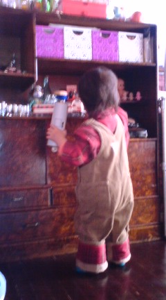 訳あって、いつもより1日早いけど・・・今日は毎週恒例の、実家の日だった冴空さん。叔母ちゃんと遊ぶのが、好きな冴空さん。仕事が休みの叔母ちゃんは、冴空さん到着時には千葉までお買い物に行ってた訳ですが。お昼過ぎには帰宅予定。ちょっと、遊んで待つことにしましょう・・・・と思ってたのに。大人しく待ってられない、冴空さん 人っ子一人いない叔母ちゃんの部屋に侵入し、物色し始めましたTVのリモコンを片手に、キレイに並べられているマニキュアを倒して遊んでいる冴空さんそんな、ドミノ倒しみたいに倒したら・・・・片付けるのが大変ではないかそれに、何故にTVのリモコン持参してるのでしょう。全く持って意味が解りませんが・・・・兎に角、辞めてくださいマニキュアのドミノ倒しにも飽きてきた、冴空さん。次なる標的は、テーブルの上ボールペンで絵を描いてみたり、もう滅茶苦茶な冴空さんテーブルの上に置かれていた、ハチのオモチャで遊んでる冴空さん。このハチのオモチャ・・・冴空も持ってるじゃんなにも、叔母ちゃんの部屋を物色してまで遊ばなくても・・・。なんだか、謎の行動が多い冴空さん。肝心の叔母ちゃんが帰ってきた頃には「外で遊ぶー!」となり・・・大きい婆ちゃんと、外に遊びに行ってしまった冴空さん。シャベルを片手に、庭で穴を掘って遊んでいたようなのですが。靴を泥だらけにして帰ってきた、冴空さん怒りたい気持ちは、やまやまなのですが。「ママー」と言いながら、こんなプレゼントを持ってきた冴空さん今回だけは、許してあげます。今回だけは・・・