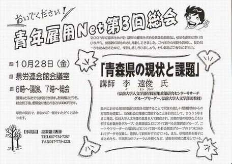 今日はイヨンジュンさんの講演があります。6時からです。弘前大学で雇用の研究をし、その政策提言をしていくことは大切だと思います。私は心から期待しています。