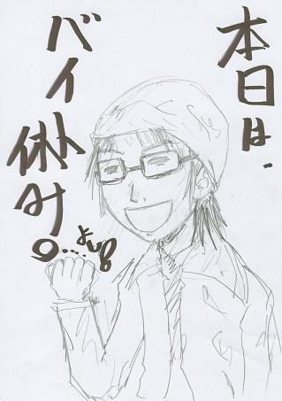 本日は、バイト休みです。ちなみに、ラフ画のさえない人物は私です。。。。まあ、お休みと言っても、病院に通院して、その後買い物してと、イラスト同様にさえない休日の過ごし方でございました。。。