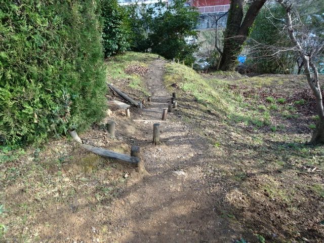 私の職場の正門を出たところにある、山の斜面をおりる小道です。こんな小道は好きで通ってみたくなるのですが、マムシがいると聞いてこわくなり、以前はよく通っていましたが今は行っていません。この写真の手前にはガードレールがあり、ある程度背の高さがないと乗り越えられないようになっています。つまり、私の職場の学校の正門近くにある小道で、お子さんも通ることがある場所の近くで、マムシがいるかもしれない危険な場所ですが、危険箇所の判断が難しいお子さんたちは一人で行くことがないように気をつけていますし、仮に一人で行ったとしても危険箇所に入ることは実質不可能という状態になっています。(かなりおかたい書き方で申し訳ありません)昨日は青空が見えて、日差しがあたたかかったです。日差しがやわらかく、桜の並木も居心地がよさそうでした。昨日はようやく晴れたときの写真が撮れてうれしくなりました。