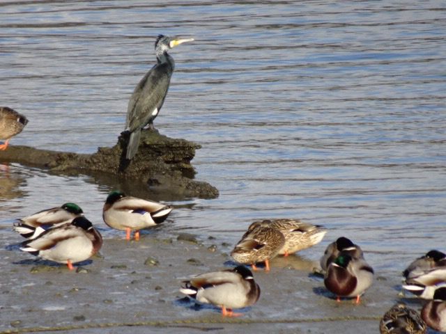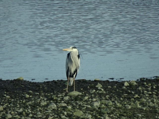 昨日、椹野川(ふしのがわ:山口県山口市)で見たサギです。アオサギのようです。シラサギも飛んできました。シラサギのほうが体長が短いように見えました。昨日は川の中央部は水がなく、そこにサギがいました。右の写真は先週撮った同じ場所ですが、川底が見えていません。この場所は河口付近なので、海の満ち引きで水面が上下します。昨日もカモがたくさんいて、いつものおだやかな風景でした。昨日は母の入院している病院で、医師から病状について説明を受けました。検査した数値がかなりよくない状態で、もうしばらく入院加療するとのことでした。入院した時と同じように、私は何も言えませんでした。黙って頭を下げて病室を出ました。今度は医師も丁寧にお辞儀をして挨拶されました。いろいろ考えますが、仕事に行く時間がくると気持ちを切り替えますので、今はそれもいいのかもしれまん。