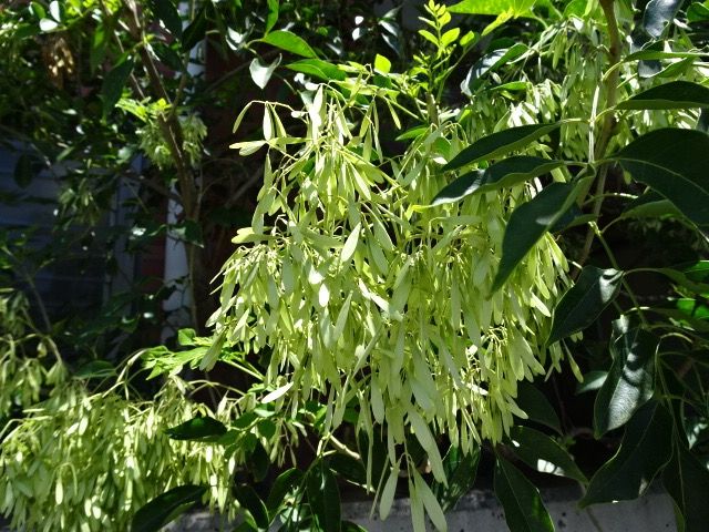 トネリコの実を見かけました。枝の先で、大きな房になっていました。2階に届くほどの高さでした。建物は通院先の病院です。時々吹く風で揺れていて、涼しそうに見えました。