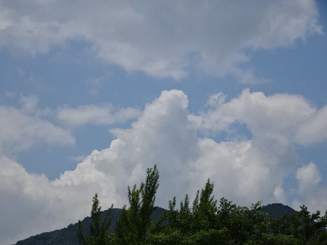 山の上に白い雲がありました。入道雲のようにも見えました。上には、大きな白い雲が浮かんでいました。雲の下は、こんな風景が広がっていました。暑い夏の日でした。