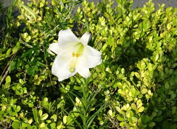 ユリが咲いていました。道沿いの歩道で咲いていました。白い花が形良く咲いていました。毎年 時季になると咲く花を見て、季節を感じました。