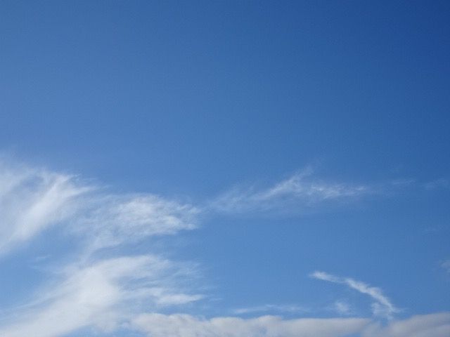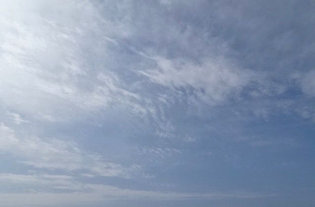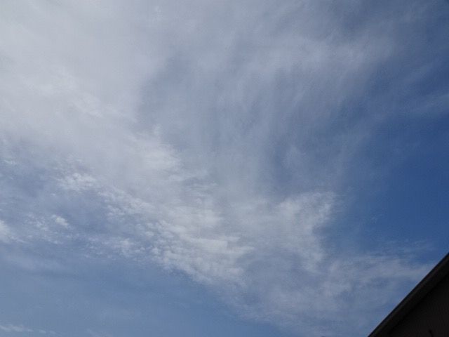 青空を見上げました。薄い雲が 広がっていました。平たい形の雲もありました。雲のまわりは、繊細な模様になっていました。