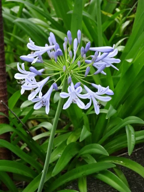 アガパンサスの花が 咲いていました。茎がまっすぐ 伸びていました。草むらの中で 咲いていました。紫色が、落ち着いた雰囲気でした。