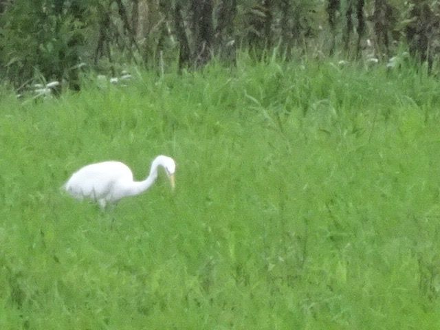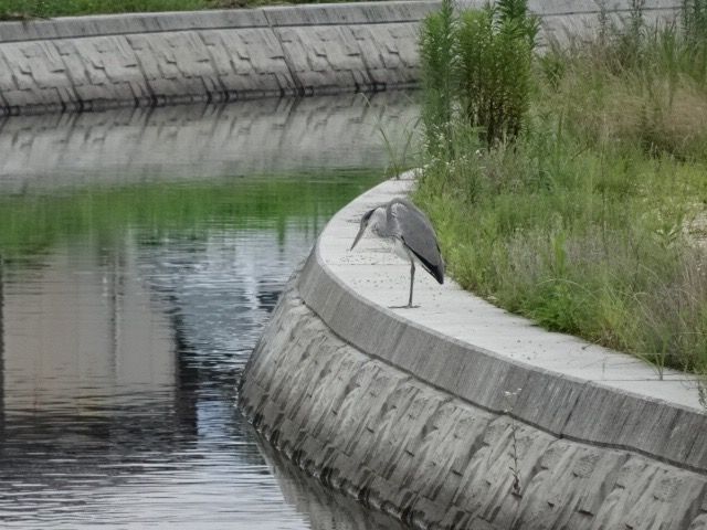 サギを見かけました。アオサギのようです。少し左側を向きました。まっすぐ前を向きました。サギのまわりでは、ゆっくり時間が流れているようでした。