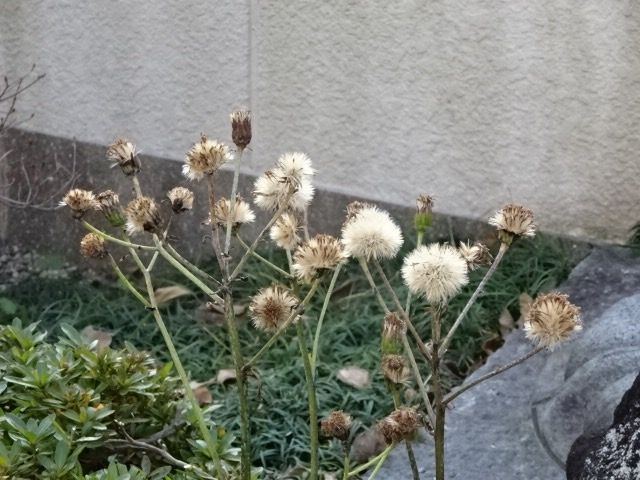 花の咲いているものは家の北側に植えてあり、綿毛のある方は南側です。
