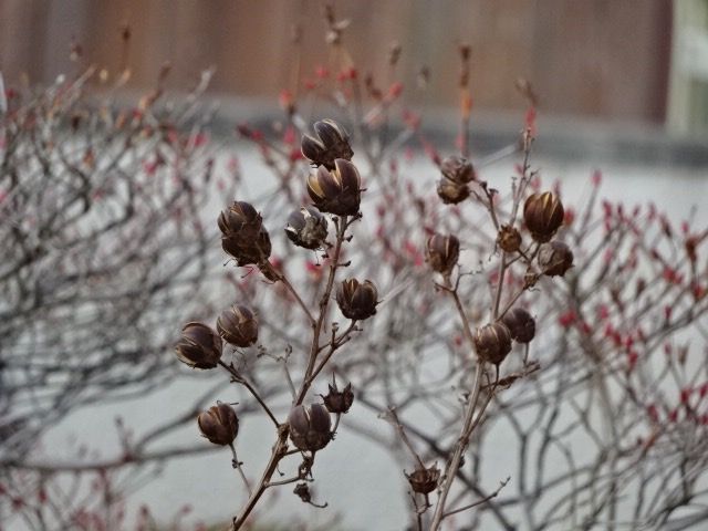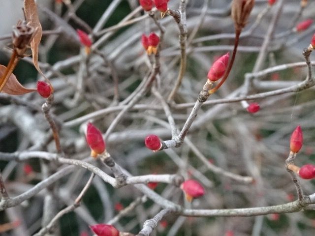 秋の終わりの頃は燃えるような赤い葉がとてもきれいでしたが、今は落葉し赤い芽がきれいでした。