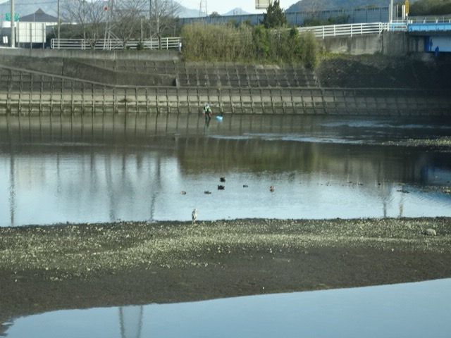 この場所は河口付近なので、海の満ち引きで水面が上下します。