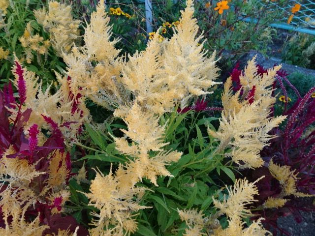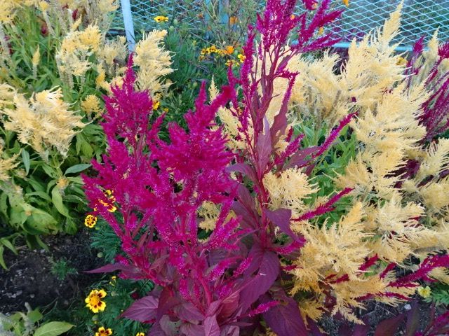 ケイトウの花は、おうぎ形のものをよく見ていましたが、こんな形の花もあるのですね。