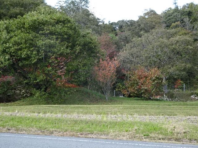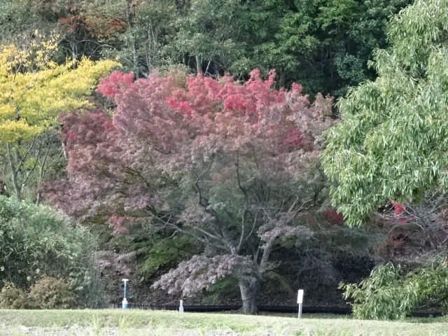 刈り入れが終わった田んぼの向こうに、紅葉した葉が見えて、
