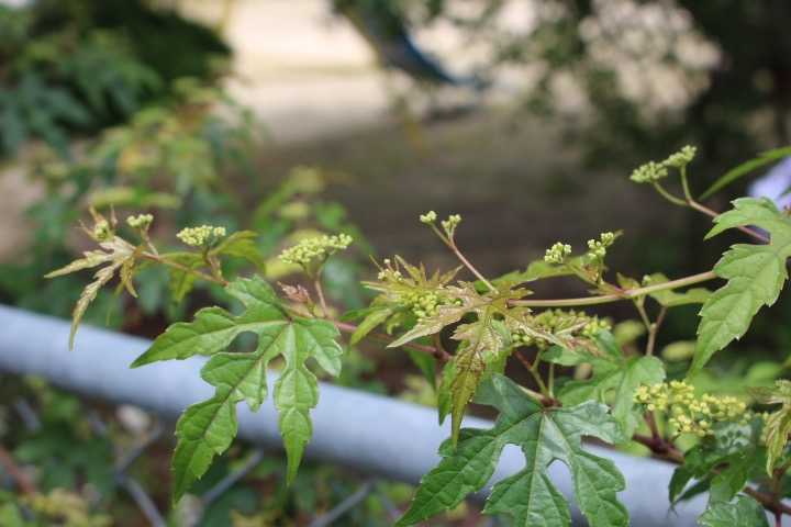 フェンスの上にも葉が伸びていました。