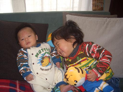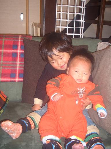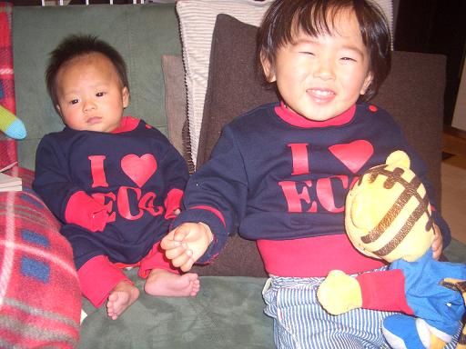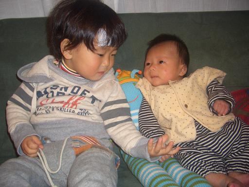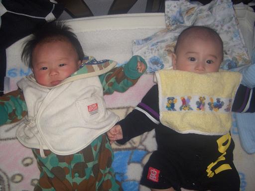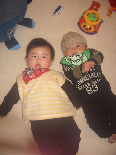 従兄弟の玲鳳クンと旭のお揃い。兄弟だけじゃなく、1ヶ月違いの赤ちゃん同士も また可愛い