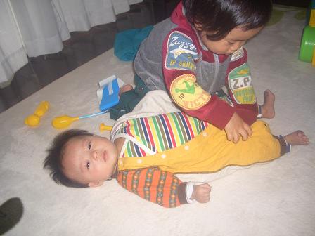 ゴッコ遊びがブームな迅。ママが相手してくれないと解っているので、文句の言わない旭が相手。ご丁寧に服まで脱がされ、抵抗の出来ない旭はされるがままでイイ迷惑です