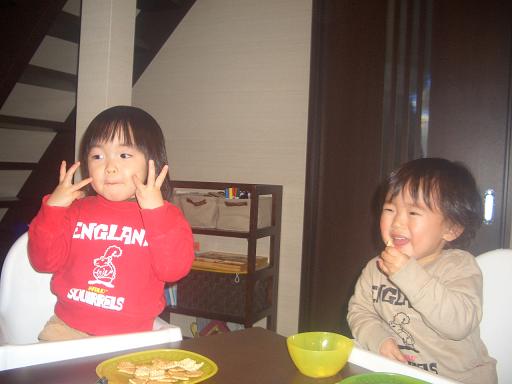 迅、2歳5ヶ月になりました。1人で出来る事や、1人でやりたい事…… 何でも先ずは自分で…という事が多くなってきましたただ、誰に似たのやら 諦めが早く『出来れないの』 と泣きべそ。……だからぁ~ 出来ないの…だってばお兄ちゃん歴3ヶ月。役立つ事も増えてきましたが、 ・叩く ・蹴る ・泣かす ・起こす ………旭は多大なる迷惑を被っています 可哀相な旭成長したなぁ…と感じる事、ビックリする事は、記憶力と洞察力。『この間、〇〇したやんかぁ~』『〇〇食べたい。』 大抵、お菓子だったりするので、無いと私が言うと、『△△にあるやんか』 と。で、あるんです。確かに其処に……。隠しているツモリが、シッカリ見られていて、尚且つ覚えられている……… 恐るべし毎日、対等に私と会話し、対等にケンカし、最近はお世辞まで飛び出す2歳児。今でこれなら、この先どうなるのか 恐るべし恐るべし……………